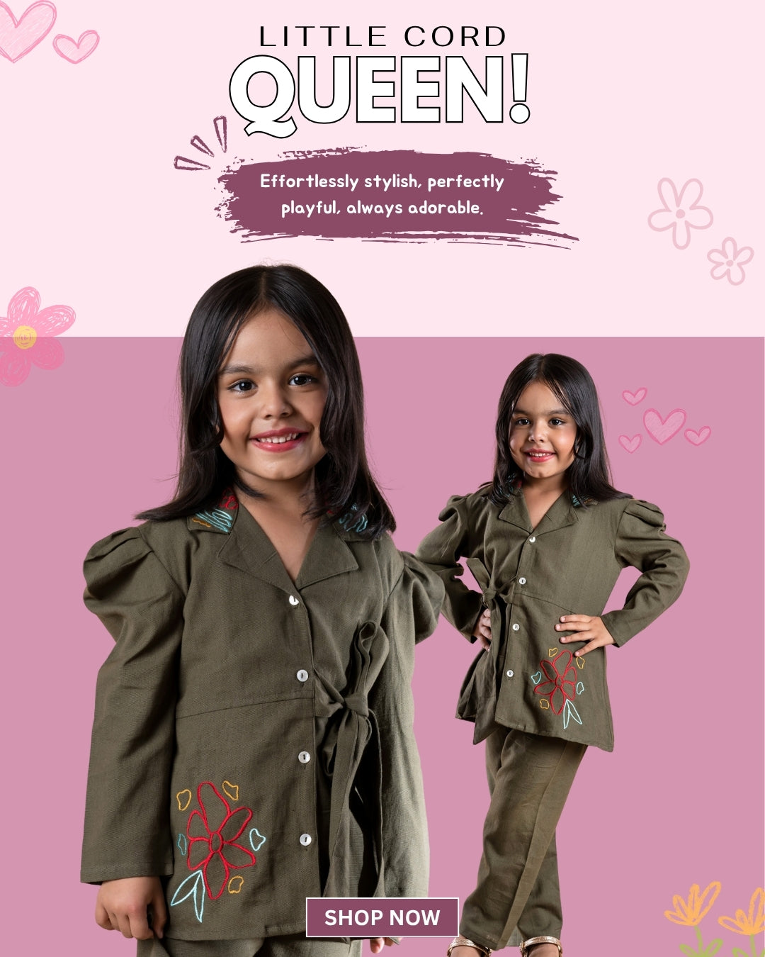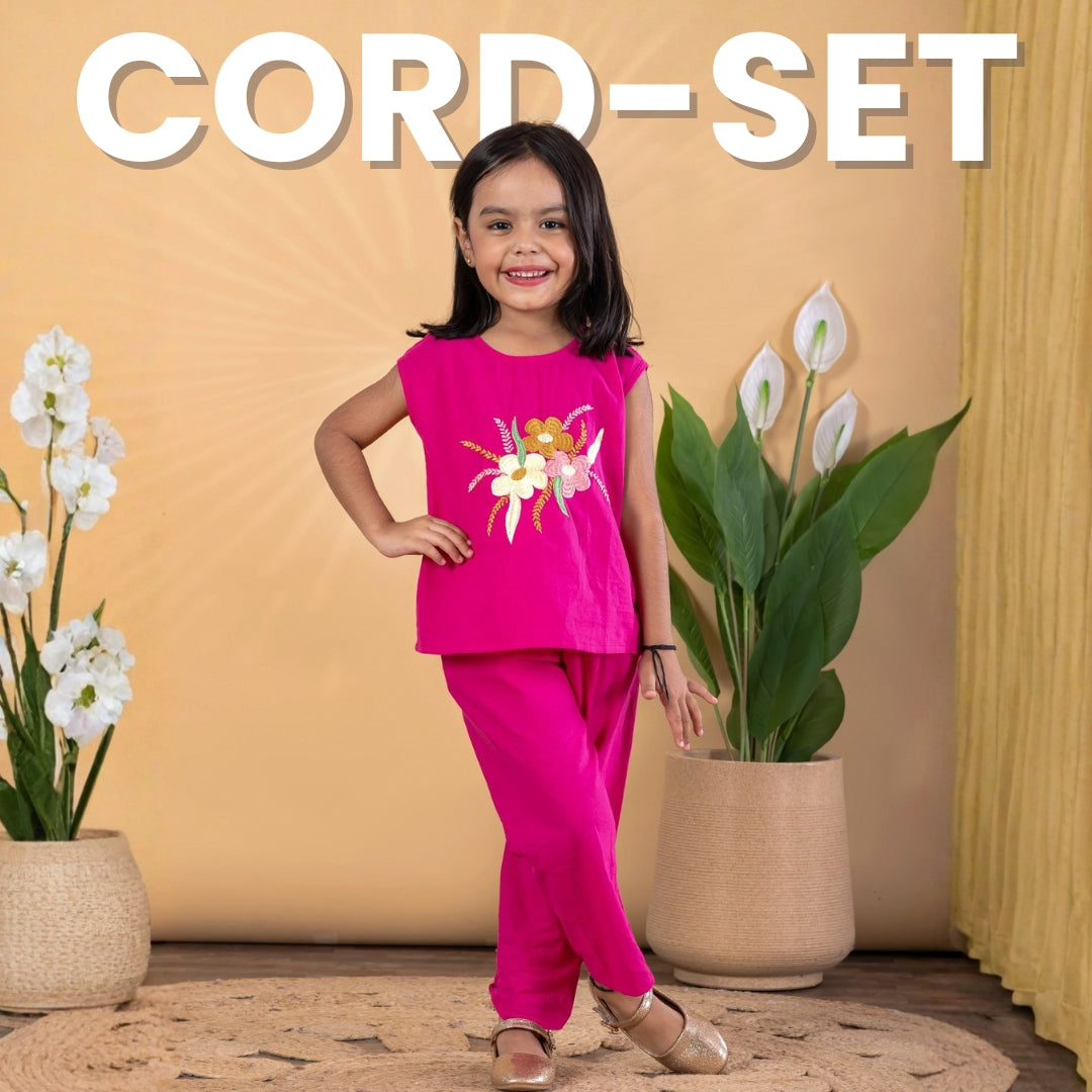 Rosy Glow Embroidered Cotton Flex Set – Girls